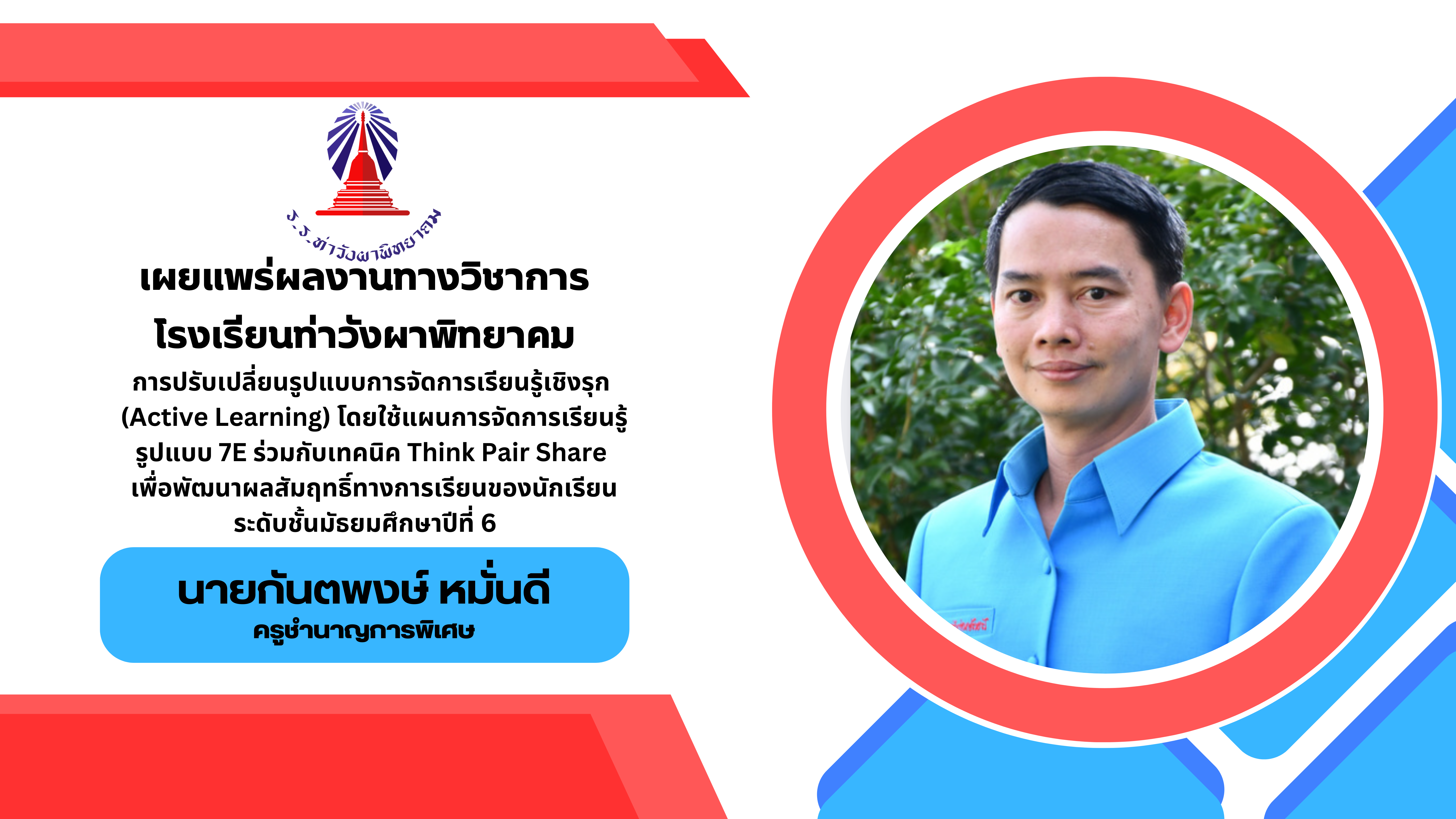 การปรับเปลี่ยนรูปแบบการจัดการเรียนรู้เชิงรุก (Active Learning) โดยใช้แผนการจัดการเรียนรู้ รูปแบบ 7E ร่วมกับเทคนิค Think Pair Share เพื่อพัฒนาผลสัมฤทธิ์ทางการเรียนของนักเรียน ระดับชั้นมัธยมศึกษาปีที่ 6