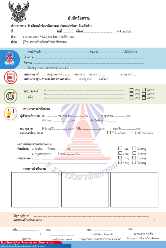 แบบฟอร์มรายงานผลการดำเนินโครงการ
