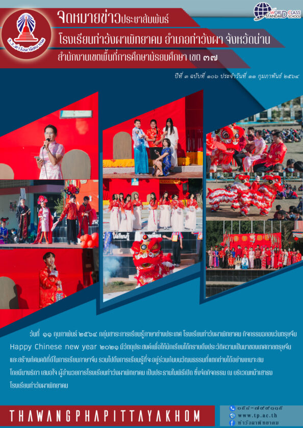 วันที่ 11 กุมพาพันธ์ 2564 โรงเรียนท่าวังผาพิทยาคมจัดกิจกกรมวันตรุษจีนโดย กลุ่มสาระการเรียนรู้ภาษาต่างประเทศ