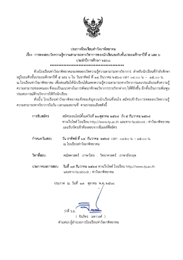 สมัครสอบวัดความรู้ความสามารถทางวิชาการฯ โรงเรียนท่าวังผาพิทยาคมได้ตามลิงค์ข้างล่าง