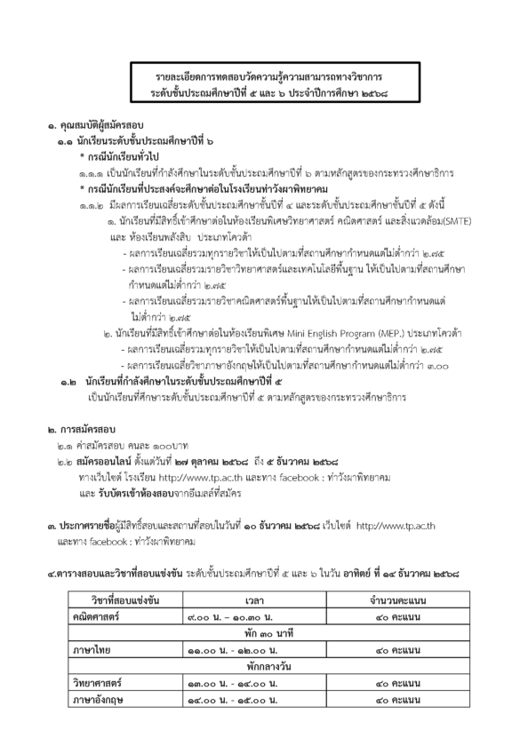 โรงเรียนท่าวังผาพิทยาคม เปิดรับสมัครสอบวัดความรู้ความสามารถทางวิชาการฯ ประจำปีการศึกษา 2568