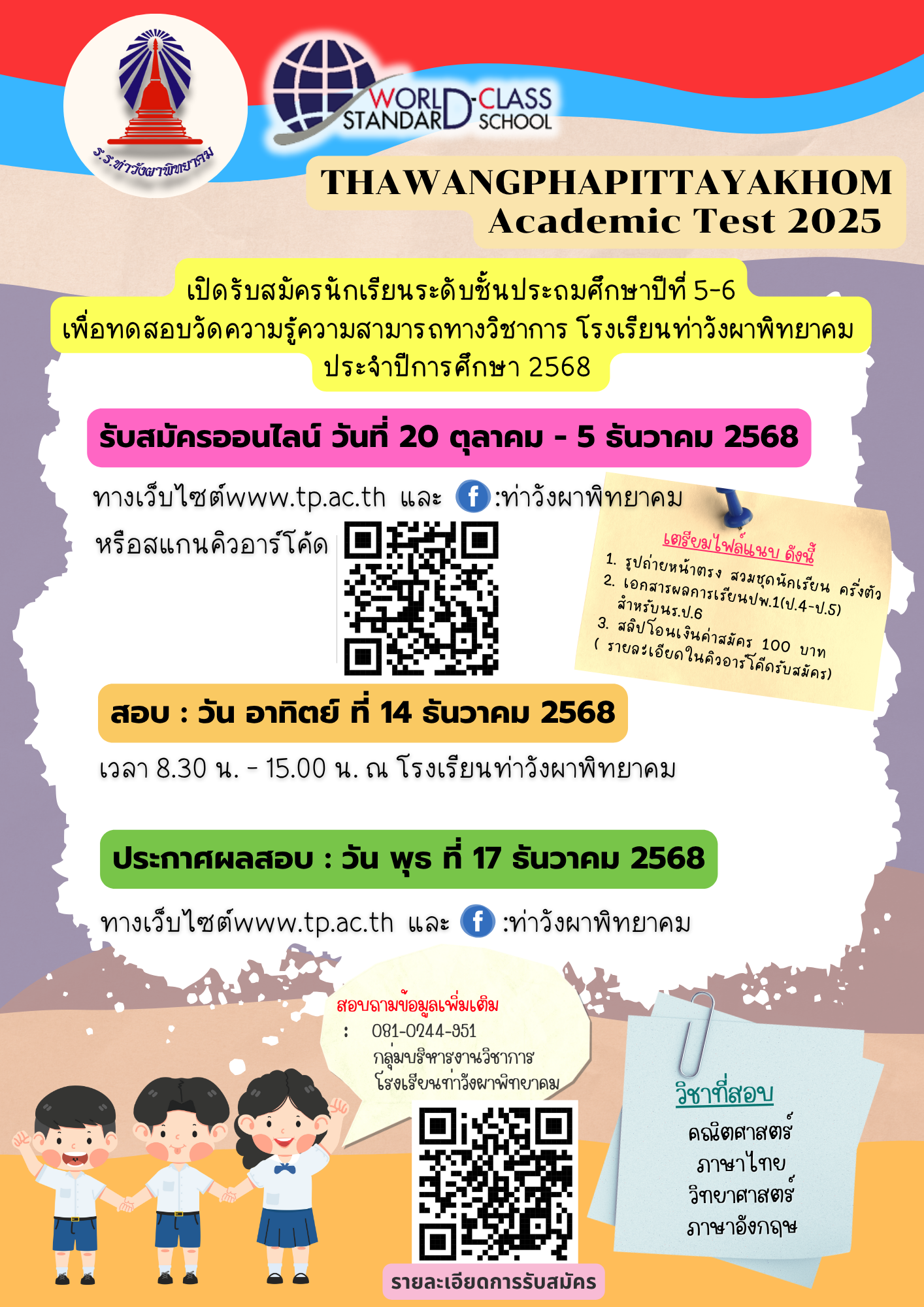 โรงเรียนท่าวังผาพิทยาคม เปิดรับสมัครสอบวัดความรู้ความสามารถทางวิชาการฯ ประจำปีการศึกษา 2568